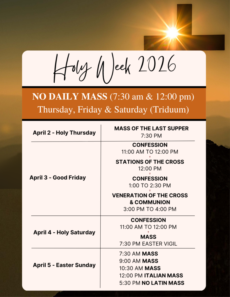 *Live streaming will remain the same. Streaming is daily with the rosary beginning at 7:00 am & on Sunday a second streaming beginning with the rosary at 10:00 am.